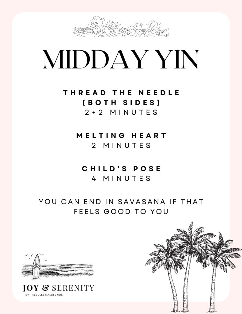 What I prepared for today is a short and sweet Midday Yin Yoga sequence that provides the perfect break in your day.